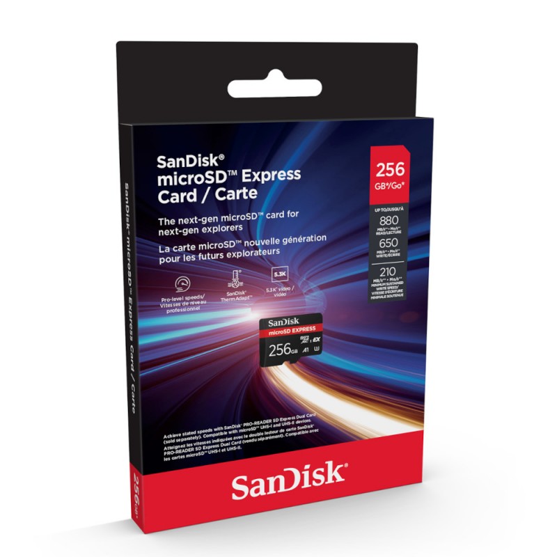 Pojemność:256GBFormat:microSDXC™Wydajność/prędkość:prędkość odczytu do 880 MB/s, prędkość zapisu 650 MB/sInterfejs:PCIe NVMe UHS-IWymiary:14.99mm x 10.92mm x 1.02mmGwarancja:Ograniczona dożywotnia gwarancjaTemperatura działania:-25°C do 85°CTemperatura przechowywania:-40°C do 85°CZAUFAJ SANDISK